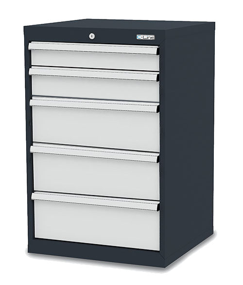 5 schuifladen: fronthoogte 1 x 75, 1 x 125, 3 x 200 mm